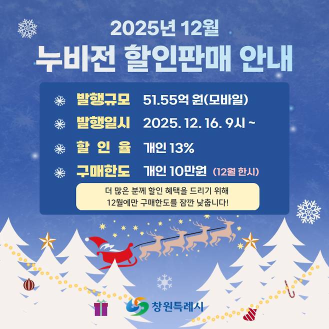 창원시는 올해 마지막 추가 발행분으로, 8월 판매 중단 이후 남은 예산과 11월 캐시백 행사 미사용 예산 등 연말 정산 과정에서 확보한 재원을 총동원하여 발행 규모를 마련했습니다. 특히 13%의 할인율을 유지하여 시민들이 체감할 수 있는 혜택을 제공하는 데 중점을 두었습니다.