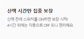 - A: 산책을 시작할 때 앱에서 스마트ON을 켜면 보장이 시작됩니다. 4시간 후 자동으로 OFF됩니다.