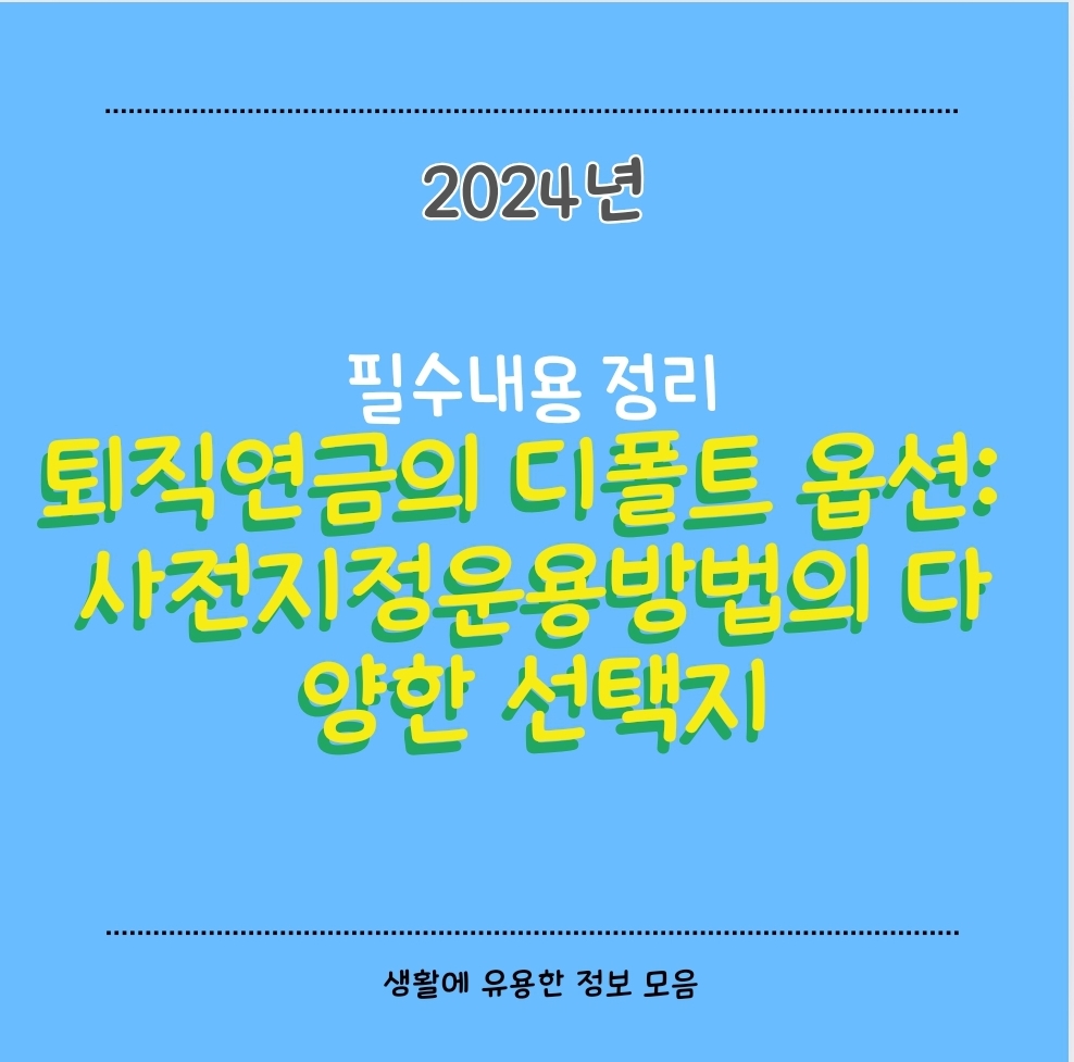 - 설명: 사전지정운용방법의 일종으로, 근로자가 운용 지시를 하지 않을 경우 자동으로 선택되는 옵션입니다. 이는 근로자가 자산 운용에 대한 결정을 하지 않더라도 안정적인 수익을 추구할 수 있도록 돕습니다.