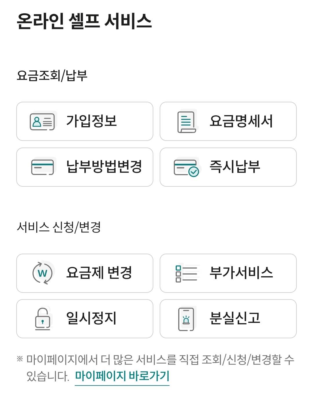 - 서비스 변경: 데이터 요금제, 부가 서비스 변경 요청