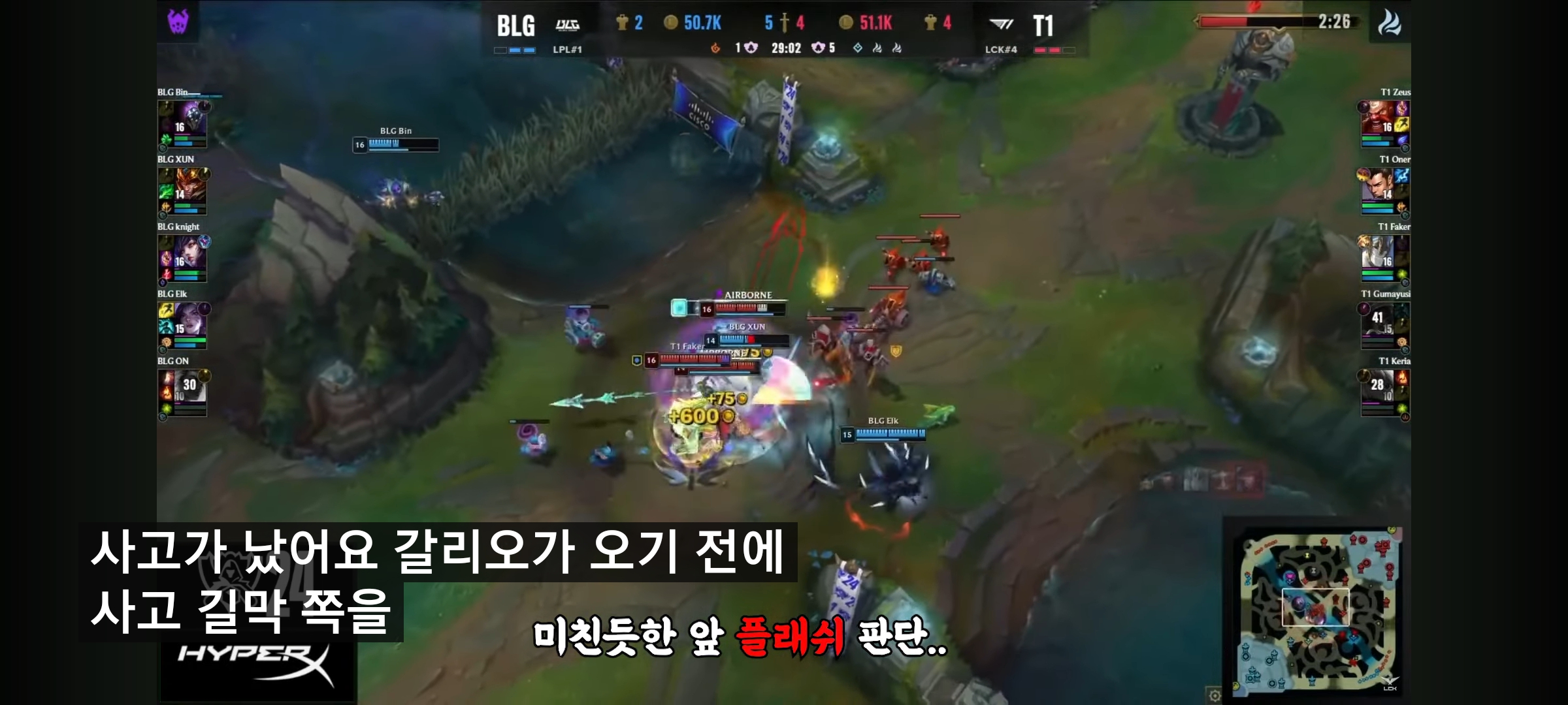 - 초반 대응 부족: T1은 BLG의 초반 압박에 효과적으로 대응하지 못했습니다. 특히, 구마유시와 제우스가 연이어 처치당하면서 팀의 전반적인 흐름이 무너졌습니다.
